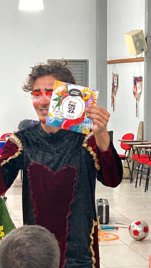 O momento contou com a presença de um artista de rua, que trouxe palhaçaria e malabarismo para apresentar a Roda de Conversa sobre Proteção. Geovani apresentou o conteúdo da roda, com a participação de Michelle, Luís Duarte e outras pessoas.